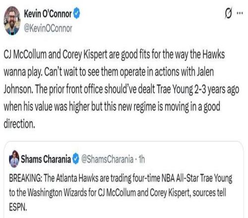 好在如今老鹰队快刀斩乱麻选择送走特雷杨,能够看出老鹰全新的管理层正在朝着正确的方向前进。