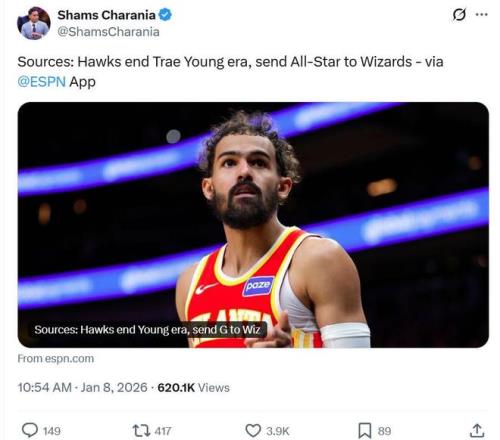 更重要的是名记Shams在后续报道中指出,老鹰队之所以愿意低价卖掉特雷杨,主要也是为了增加财务灵活性,以便在未来一个月追求高薪球员。
