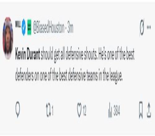 休媒:凯文-杜兰特理应得到所有的防守表扬。他是联盟中防守能力最强的球员之一,而且所在的球队也是防守实力最强的队伍之一。