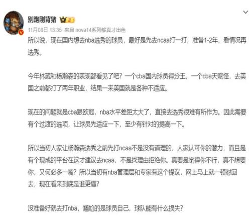 媒体人别跑刚背猪炮轰林葳、杨瀚森,一个CBA国内得分王,一个CBA天赋怪,去NBA前都打了两年CBA结果到了美国就各种不适应,现在CBA跟欧冠、NBA水平差太大了。