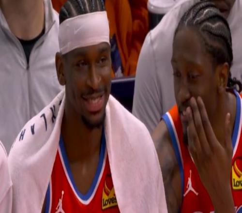 北京时间12月11日,NBA杯1/4决赛,雷霆轻松大胜太阳晋级。这是一场毫无悬念的比赛,首节雷霆就领先15分,半场领先到26分,可以说上半场比赛已经打花了,整个下半场就是垃圾时间。SGA三节27分钟就打卡下班了,在场下笑得非常开心。