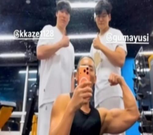 电竞体育12月17报道 健身教练分享与Zeka、Gumayusi健身房合照。
