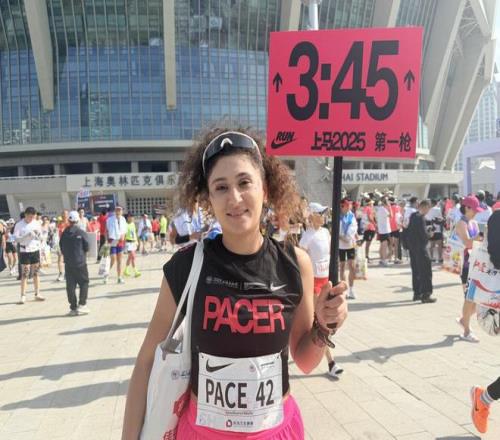作为去年就参与过上马的“老熟人”,阿塞拜疆跑者吕菲今年成为了官方配速员。