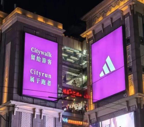 不过阿迪达斯还是抢到了几块大屏和一些地铁通道的广告位。但实际上呈现的效果和社交媒体上的自然讨论度都和NIKE在北马上“抢走的”相去甚远。