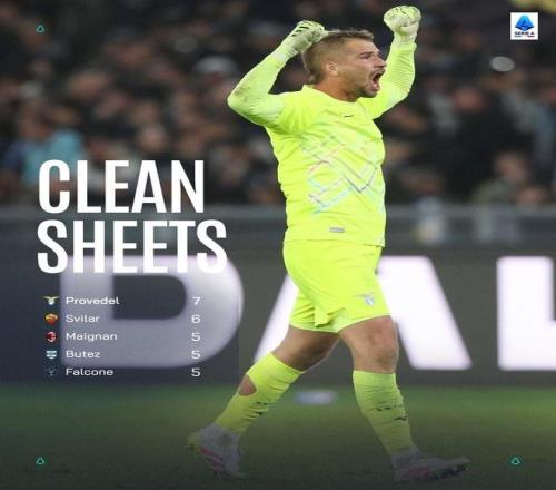 北京时间11月26日,意甲官方统计出了本赛季至今联赛中零封场次最多的门将,拉齐奥的普罗韦德尔以7次零封排名第一,罗马的斯维拉尔6次零封第二,AC米兰的迈尼昂5次零封并列第三。