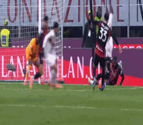 第90+2分钟,扳平比分,莱奥头槌完成绝平,米兰1-1