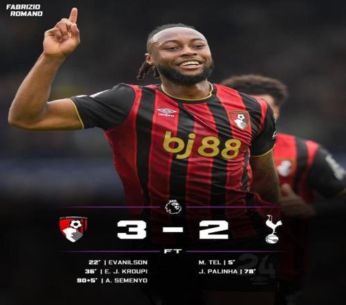 久违的胜利,伯恩茅斯战胜热刺终结连续11轮英超比赛未胜