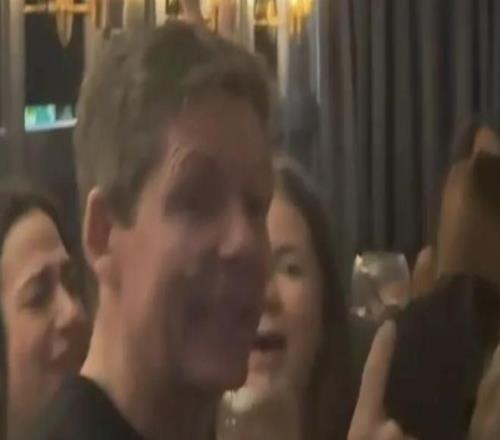 格拉斯纳看起来心情不错,在酒吧里享受着现场氛围,与当天早些时候球队被淘汰时的表情形成了鲜明对比。